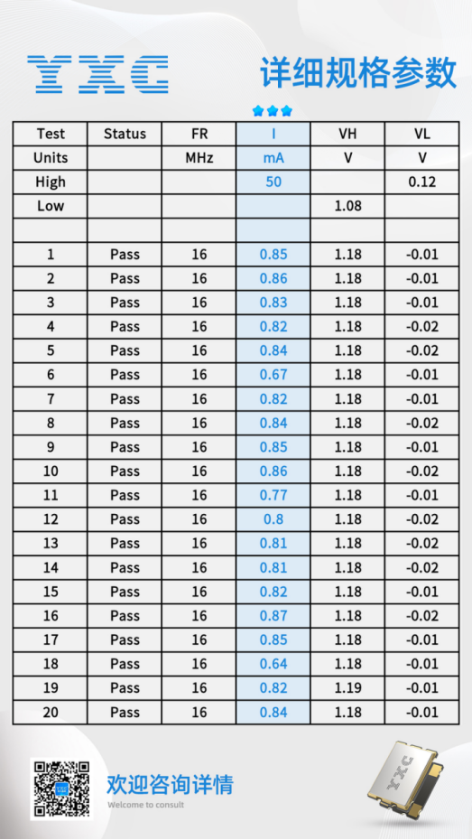 测试参数:OSC 2016 8M 1.2V CMOS -40~85℃