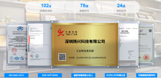 深圳扬兴科技有限公司(以下简称:YXC),自2010年成立以来,始终专注于时钟频率器件的研发、生产和销售,已成为业界领先的半导体高新技术企业。公司累计研发了40余项拥有自主知识产权的产品和技术,涵盖专利、著作权等,这些成果为公司持续发展奠定了坚实基础。产品通过了AEC-Q200、IATF16949车用体系认证及ISO14001环境管理体系、ISO9001质量管理等体系认证,全频率产品生态链广泛应用于车载、通信、工业、医疗和军工等领域。