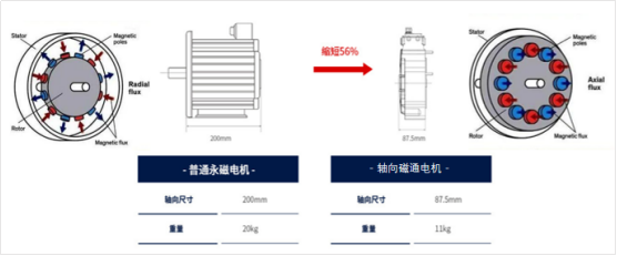 轴向磁通电机技术诞生时间较早,且理论上具有更高的扭矩密度、更高的功率密度和更小的体积等优势,但由于材料、工艺和制造技术的限制(如制造工艺复杂,线圈安装难度较大甚至出现轴向移动等问题),其发展较径向磁通电机要缓慢很多。但是近年稀土永磁材料和PCB定子技术的应用,推动了轴向磁通电机性能的提升,这些突破也推动了其在新能源汽车、机器人等领域的广泛应用。