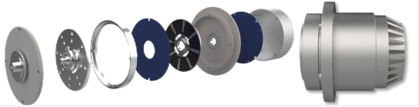 实际应用中多是采用双转子单定子结构(定子中间,转子的永磁体直接安于外壳上,组成两个气隙的结构,该结构转动惯量更大)、双定子单转子结构(转子安有安磁体且位于电机中央,具有两个对称的气隙。该结构可平衡轴向磁拉力从而提高电机机械稳定性且转动惯量小于中间定子结构,散热优于中间定子结构)、多盘组合结构(多个转子和定子交替排列构成。该结构复杂,但定子绕组的增加可使电机具有更高的转矩和功率密度,但散热难度大,且由于其过于复杂,在装配时非常难以操作)等复合形态。