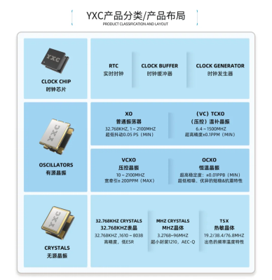 YXC构建了全面丰富的时频产品矩阵,提供从晶振到高性能时钟芯片的“一站式”全场景时频器件选型方案,广泛应用于AI算力、通信、汽车电子等多元领域。