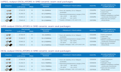 相比较常规的石英晶体振荡器,差分系列产品(LVPEL、LVDS、HCSL)具备高速、低功耗、低相躁优点,可适用于光纤通信,网络交换机、千兆网、高端服务器等相关网络设备领域。