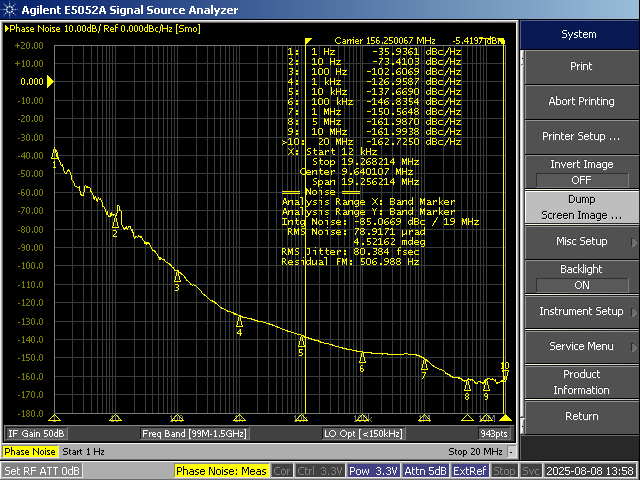 实测数据图:RMS Jitter 80fs @ 156.25MHz (12kHz - 20MHz