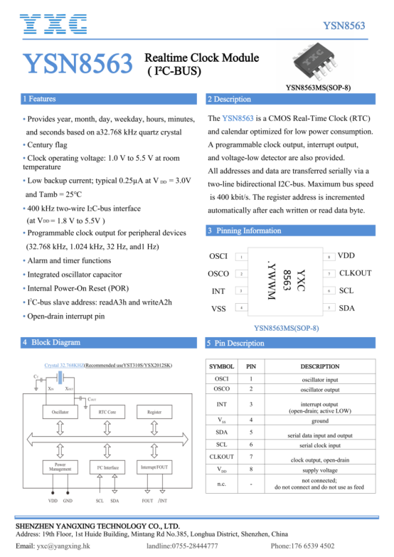 功能集成:RTC时钟芯片(YSN8563)集成了定时器、报警器、时钟输出、精准时间戳等功能,为系统设计提供了便利、故障精准定位。